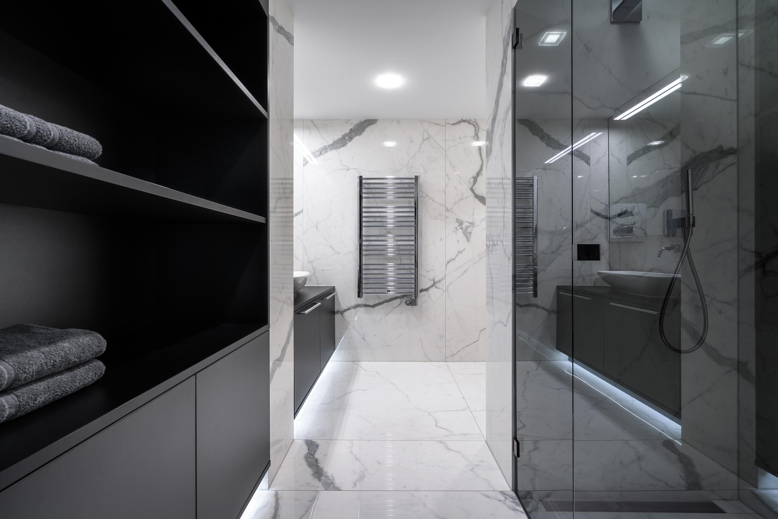 • Badezimmer mit bodengleicher Dusche und Regenbrause, Bluetooth-Radio und Föhn